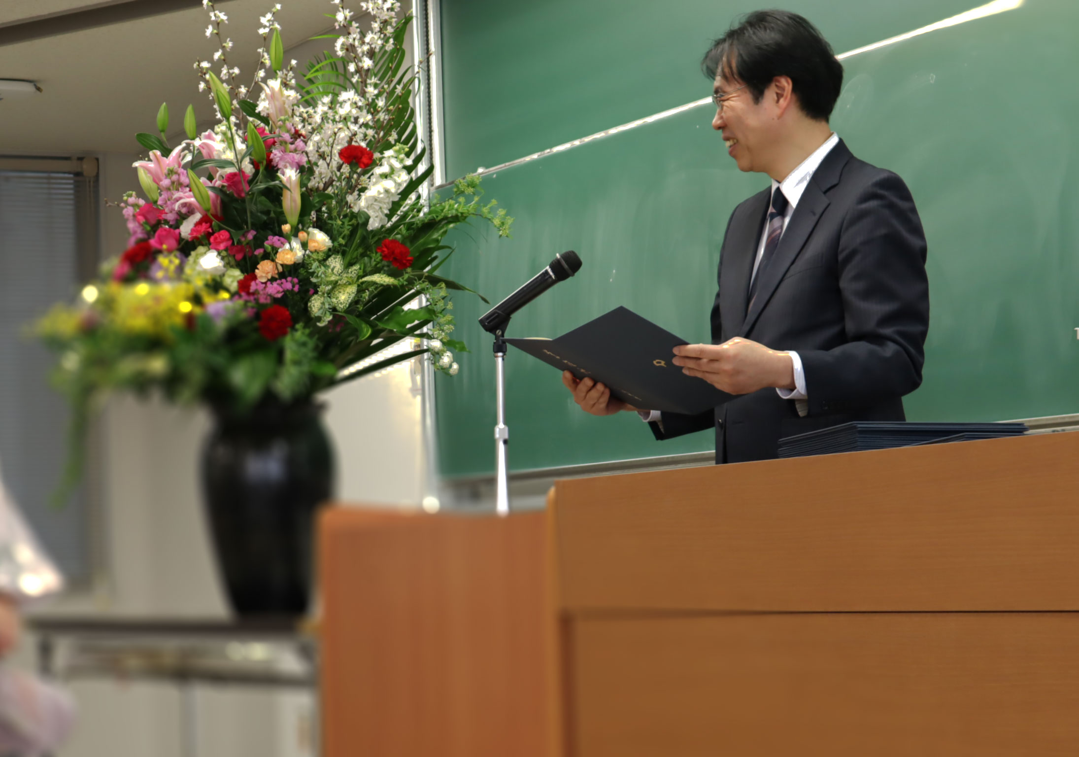 実は先ほどまで大阪城ホールで開かれた全学の卒業式に出席していました(3月25日)。この卒業式には本研究科からも修了生代表が出席しており、総長から学位記を授与されていました。私も同じ壇上にいて、その光景を目に焼き付けながら、卒業をお祝いしました。先日挙行された研究科修了式(3月13日)が和やかでアットホームな式典だったのに対し、本日の卒業式は厳かで威風堂々とした儀式でした。卒業するわけではない私ですら、ここで人生の一区切りがついたという気分になりました。実際、この卒業式への参加をもって公式の科長業務は終了です。